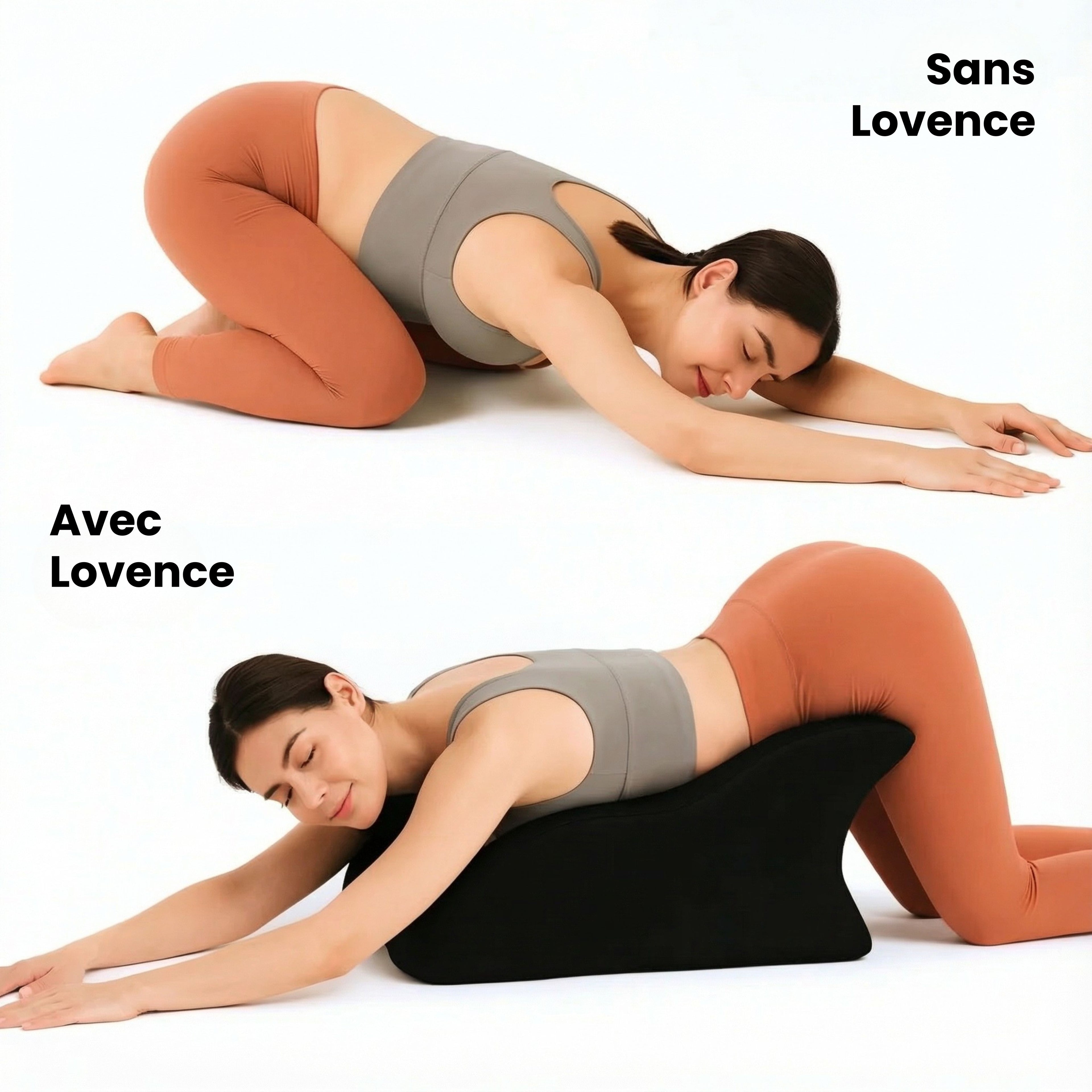 Le Coussin Lovence™ est fabriqué en mousse à mémoire de forme de haute qualité avec une housse hypoallergénique en bambou. Son angle ergonomique de 27°, scientifiquement prouvé, épouse naturellement l’anatomie féminine et soulage le mal de dos.